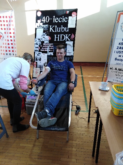 Akcje honorowego krwiodawstwa to już tradycja życia szkolnego. Co najmniej dwa razy w roku młodzież ucząca się w Centrum Kształcenia Zawodowego i Ustawicznego daje przykład bezinteresowności, chętnie oddając cząstkę siebie dla chorych i cierpiących osób. Wpływ na takie pozytywne decyzje uczniów mają z pewnością spotkania z honorowymi krwiodawcami, którzy z wielkim zaangażowaniem promują i rozwijają czerwonokrzyską ideę. Cyklicznie prowadzone są w naszej szkole prelekcje z przedstawicielami Świętokrzyskiego Oddziału Rejonowego PCK w Ostrowcu Św. – p. Januszem Czupryńskim i p. Zygmuntem Tobiaszem. W czasie tych spotkań przybliżają oni historię honorowego krwiodawstwa, dzielą się swoimi doświadczeniami i wyjaśniają wszelkie wątpliwości nurtujące krwiodawców – twierdzi opiekun Klubu HDK w CKZiU.