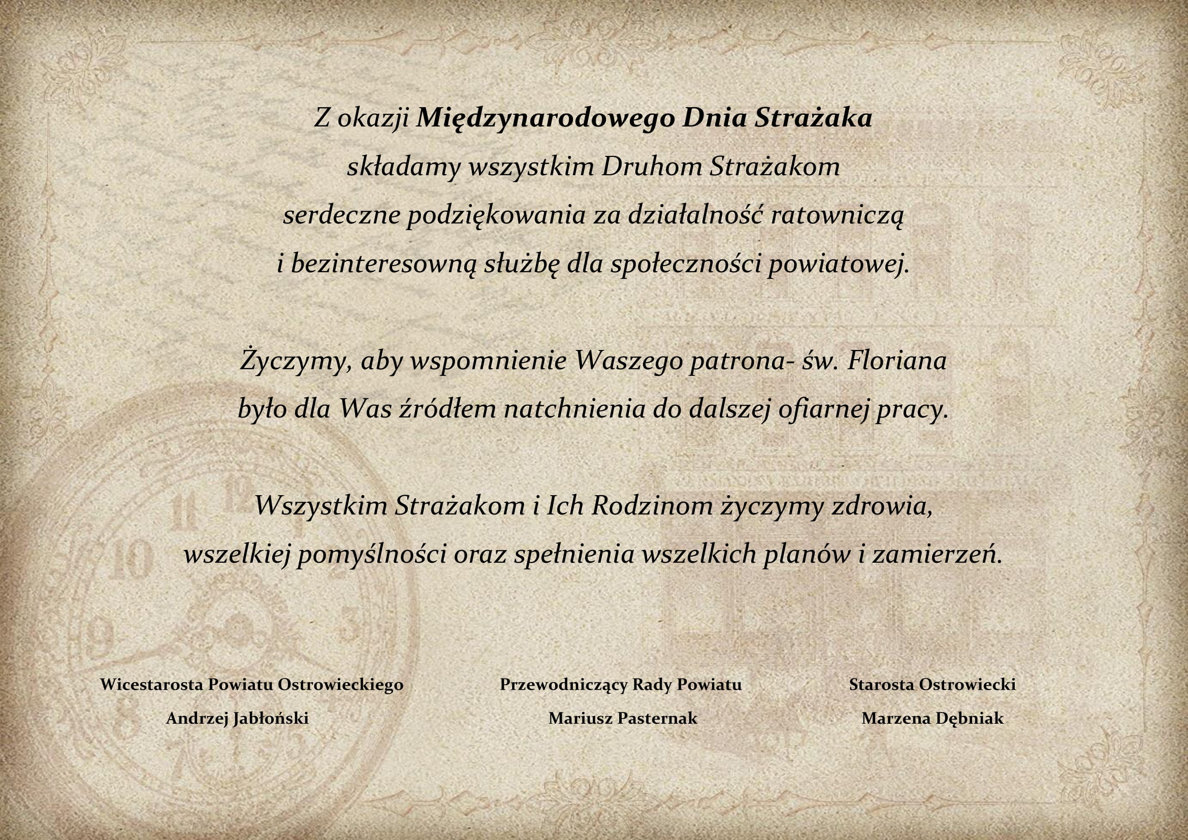 Życzenia z okazji Międzynarodowego Dnia Strażaka